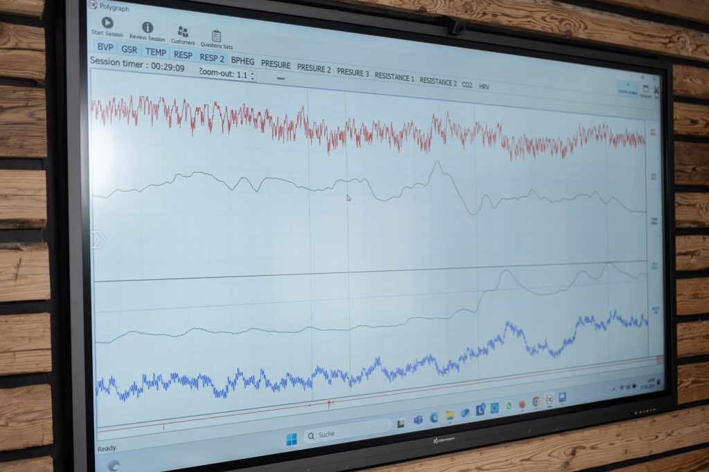 Breathing changes involuntarily when a person is under pressure. These deviations are precisely recorded by highly sensitive sensors. This creates a clear pattern that distinguishes honest responses from those under pressure. Heart rate, blood volume, and heart variability are part of the overall graphic picture.